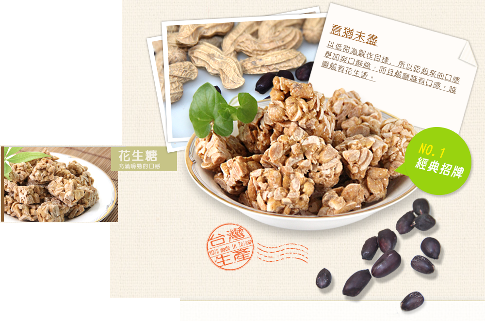 這塊招牌,阮已經傳四代囉! 自古早的土豆油行到今日的花生之家,阮堅持百年來的土豆原味,阮相信人的用心比電腦揀的卡珍貴~...